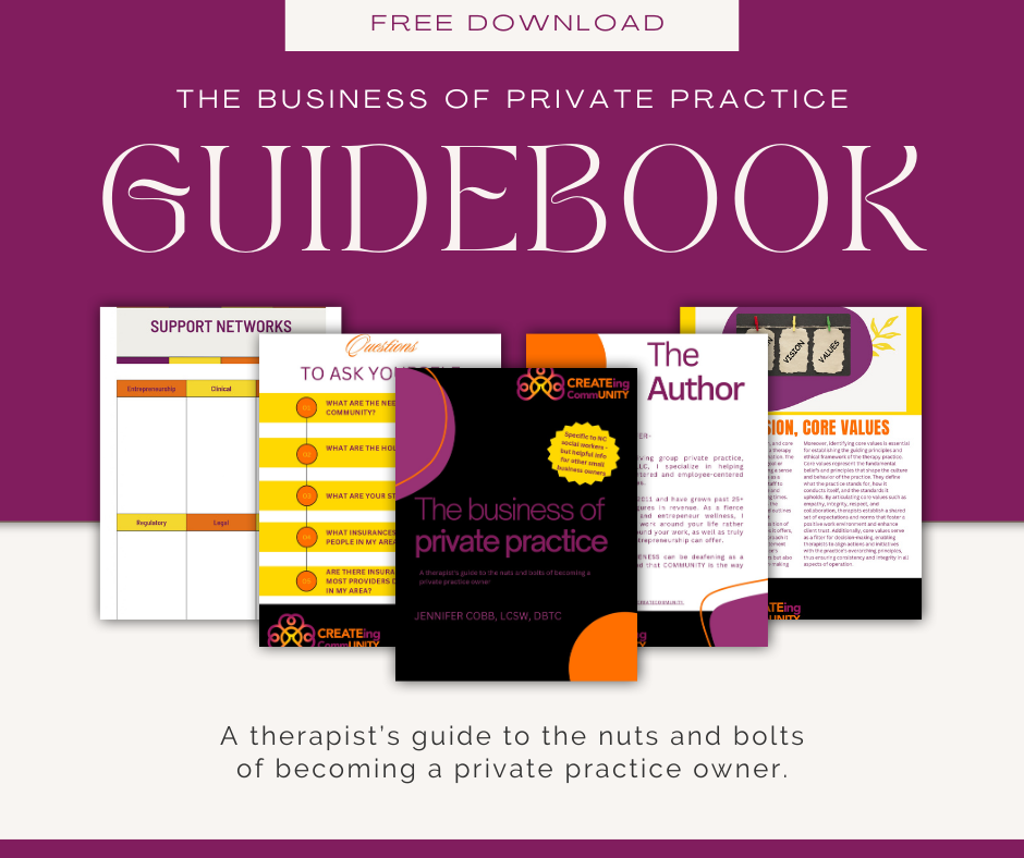 We're offering you the very same steps that we went through when creating our private practice - which then grew into a seven figure group practice! We invite you to get this value-packed ebook, complete with templates and guidance through the three S's of private practice building - Start up, Support, and Systems.